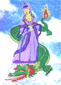 Example of how a design was created: The Kwan Yin standing on the Water was sketched from a 10 inch, 50 year old china statue that belonged to my Mom. I then created a background from a photograph, and in the printing process, used two screens --one for the background, blending the ink from blue to purple, and then Kwan Yin herself was a single colour in gold.